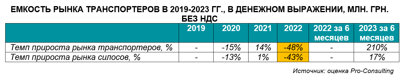 Таблица 1. Емкость рынка транспортеров в 2019-2023 гг., в денежном выражении, млн. грн.