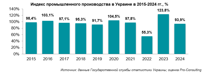 6. Индекс промышленного производства в Украине в 2015-2024 гг., %