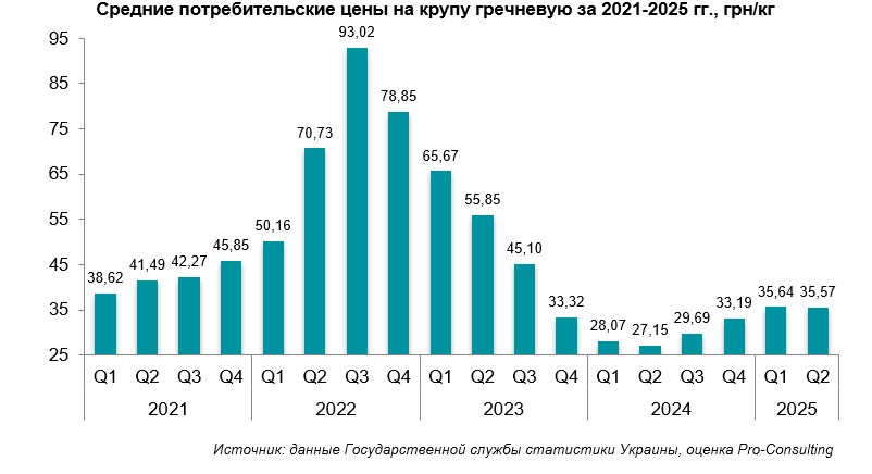 Согласно данным Государственной службы статистики Украины, в июне 2025 года средняя цена гречки составила 35,17 грн/кг.