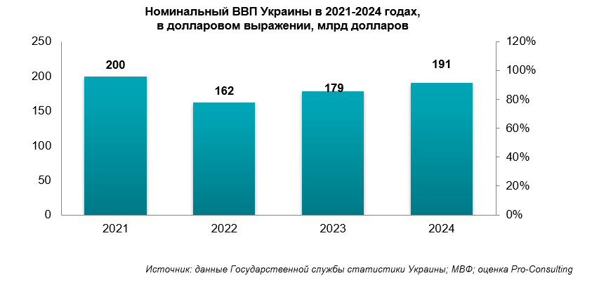 1. Номинальный ВВП Украины в 2021-2024 годах, в долларовом выражении, млрд долларов