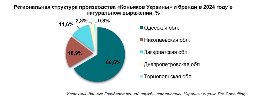 8. Региональная структура производства «Коньяков Украины» и бренди в 2024 году в натуральном выражении, %
