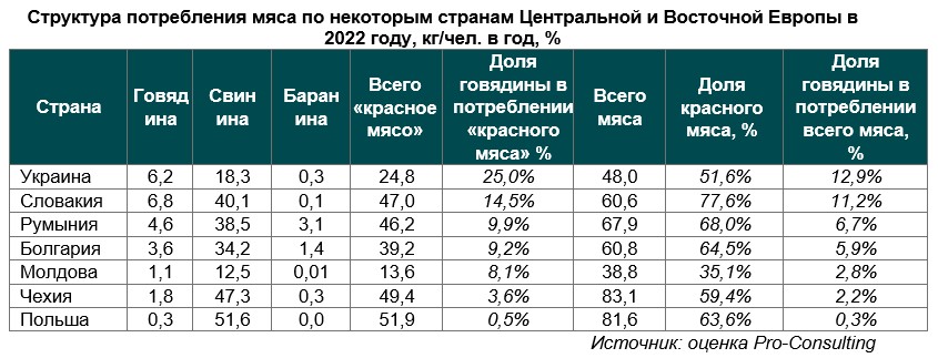 Однако уровень потребления говядины на одного человека в Украине является одним из самых высоких среди стран Восточной и Центральной Европы.