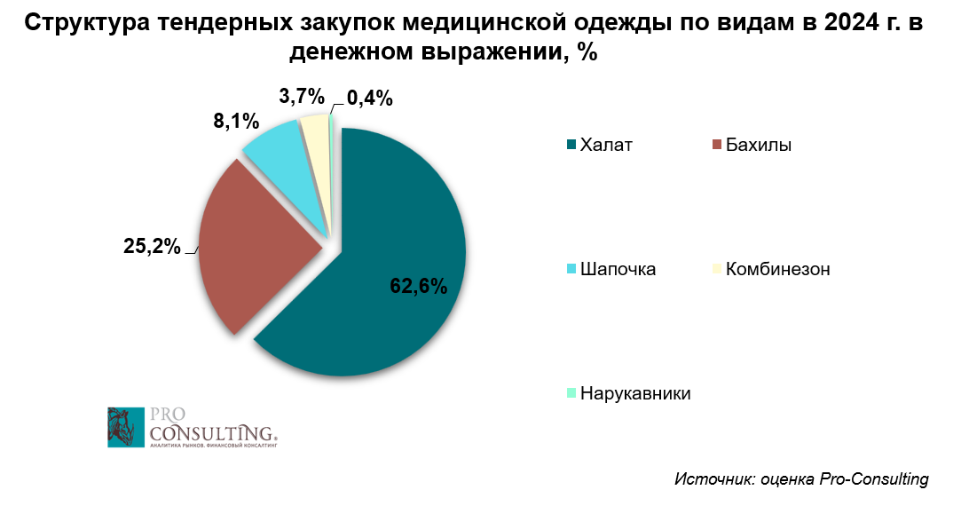 4. Структура тендерных закупок медицинской одежды по видам в 2024 г. в денежном выражении, %