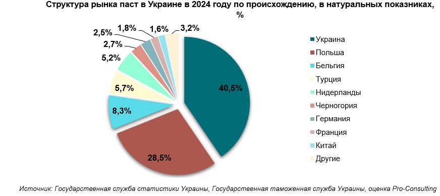 2. Структура рынка паст в Украине в 2024 году по происхождению, в натуральных показателях, %