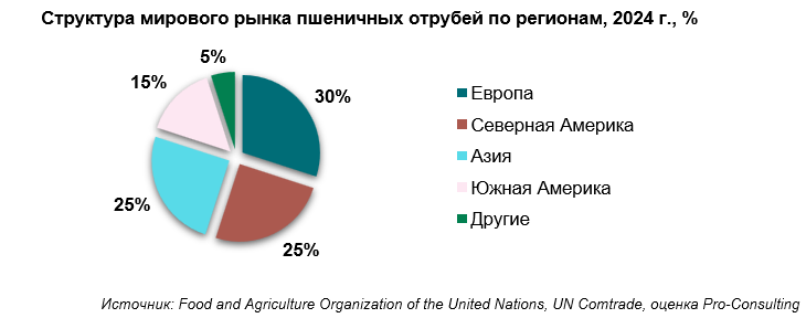 1. Структура мирового рынка пшеничных отрубей по регионам, 2024 г., %