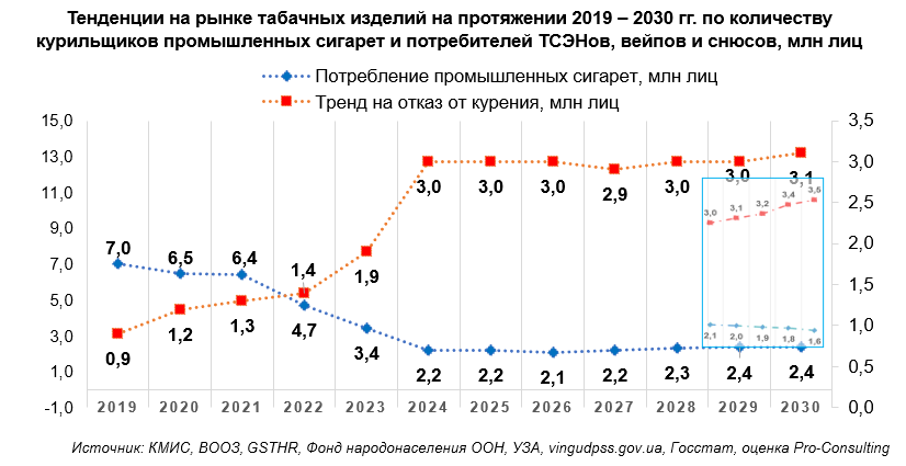 В 2022–2025 гг. спрос на сигареты возобновился из-за значительного социогенного стресса, вызванного войной. Взрывное потребление пришлось на процессы миграции и депопуляции.