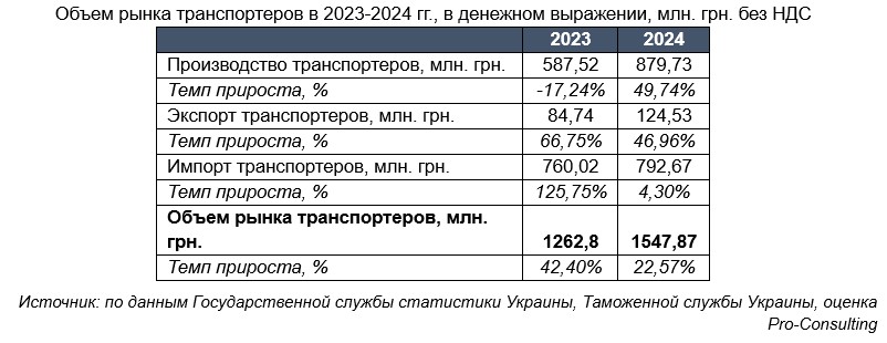 1. Объем рынка транспортеров в 2023-2024 гг. в денежном выражении, млн. грн. без НДС