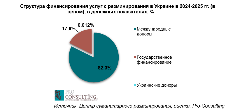 1. Структура финансирования услуг с разминирования в Украине в 2024-2025 гг. (в целом), в денежных показателях, %