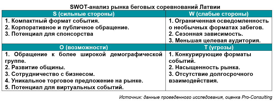 Таблица 5 SWOT-анализ рынка беговых соревнований Латвии