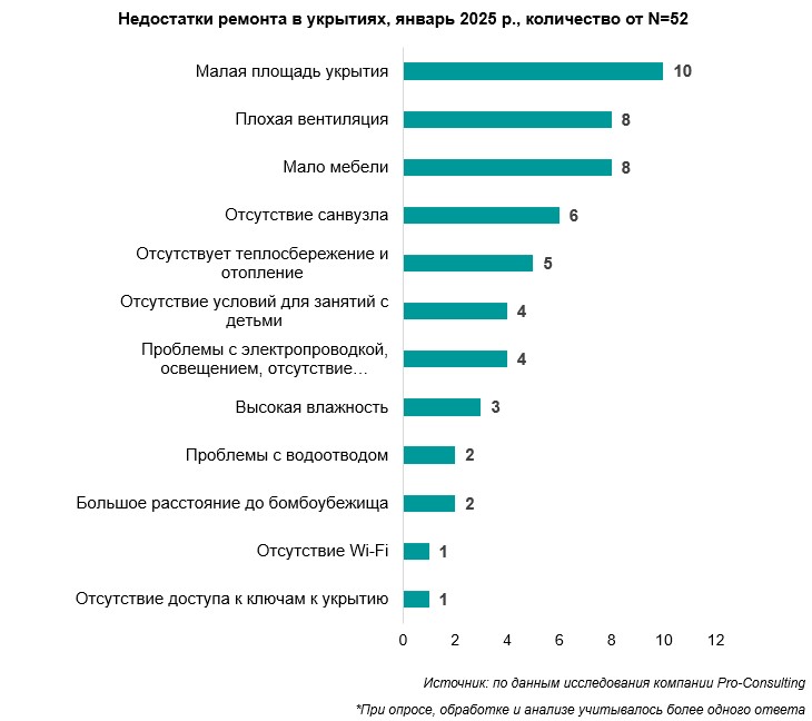 12. Недостатки ремонта в укрытиях, январь 2025 г., количество от N=52