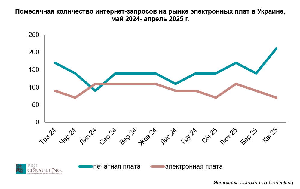 Анализ рынка электронных плат в Украине проведен компанией Pro-Consulting в мае 2025 года. Маркетинговое исследование позволило получить данные о: