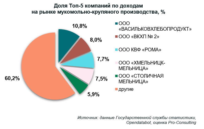 Рынок муки в Украине более концентрирован: около 40% его объема контролируют пять крупнейших компаний. В сегменте хлебобулочных изделий ситуация противоположная – доля десяти лидеров по доходам составляет лишь около 3%, что указывает на высокую фрагментированность и жесткую конкуренцию.