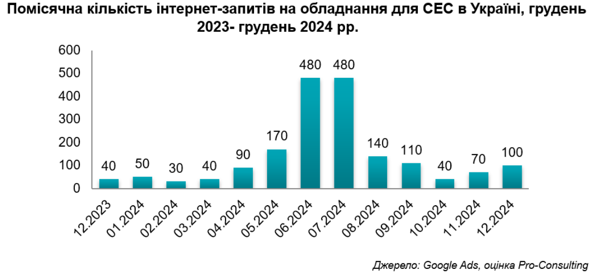 Потребительский анализ рынка оборудования для СЭС в Украине показал, что поисковая активность в интернете достигла пика в июне–июле 2024 года – период массовых отключений электричества. Основной рост спроса наблюдается в частном секторе, тогда как промышленный сегмент сдерживается рисками обстрелов и потери солнечно активных территорий на юге и востоке страны.