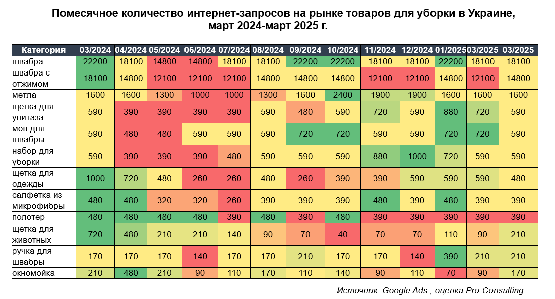 Анализ рынка товаров для уборки в Украине проведен компанией Pro-Consulting в марте 2025 года. Маркетинговое исследование позволило получить данные о: