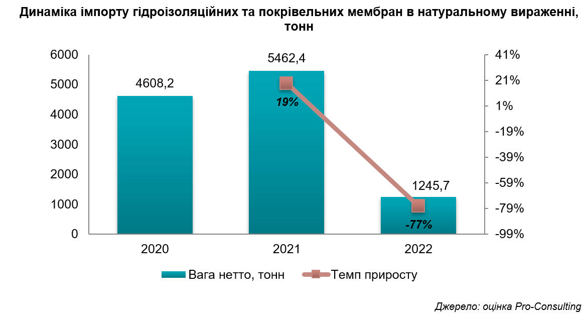 Так, як продукція гідроізоляційних та покрівельних мембран в Україні зазвичай має іноземне походження, через початок повномасштабного вторгнення росії в Україну обсяг імпорту стрімко впав. Це вплинуло не тільки на те, що стало неможливим постачати продукцію російського походження в Україну, але і через різке падіння попиту на покрівельні матеріали через зниження темпів та кількості замовлень на будівництво.
