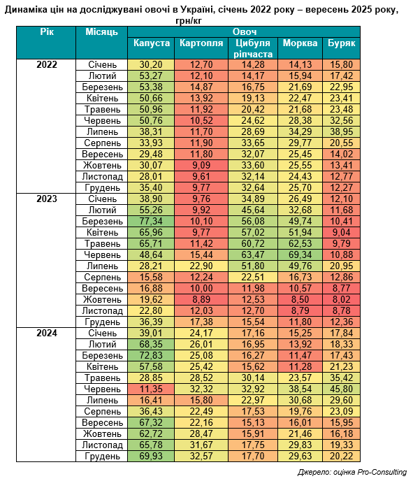 5. Динаміка цін на овочі за 2022-2025 рр.