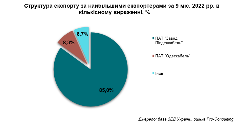 Найбільшими експортерами високовольтних кабелів в Україні залишаються ПАТ «Завод Південкабель» та ПАТ «Одескабель». Змінилась географія експорту продукції з України: до 2022 року основні об’єми поставлялись до Молдови та білорусі, наразі ж співпраця з білоруссю припинена.
