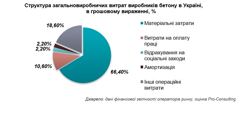 Основну частину витрат на ринку бетону становлять сировинні витрати. Також, великий вплив на собівартість продукції мають витрати на оплату праці та витрати на збут, що пов'язано з транспортними витратами - дохід залежить від реалізованого об’єму товару.