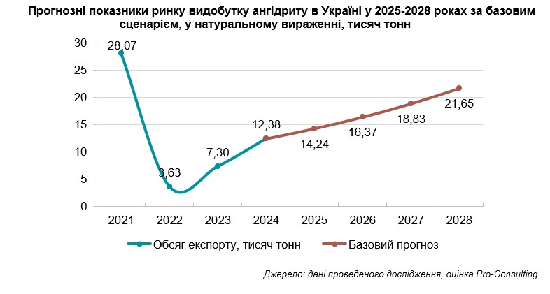 30. Прогнозні показники ринку видобутку ангідриту в Україні у 2025-2028 роках, у натуральному вираженні, тисяч тонн