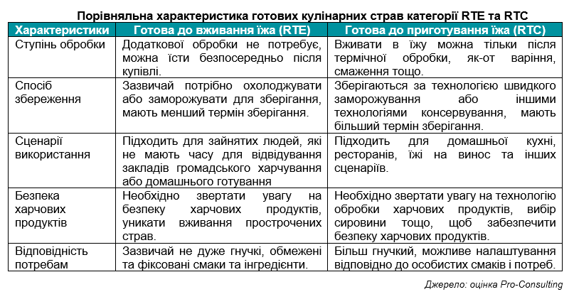 1. Порівняльна характеристика готових кулінарних страв категорії RTE та RTC
