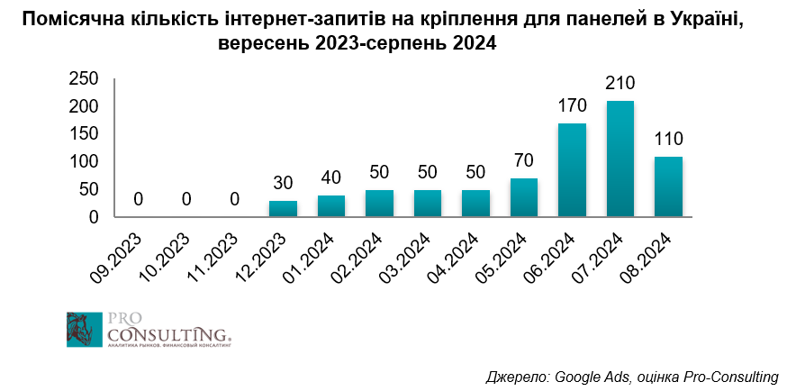 6. Помісячна кількість інтернет-запитів на кріплення для панелей в Україні, вересень 2023-серпень 2024