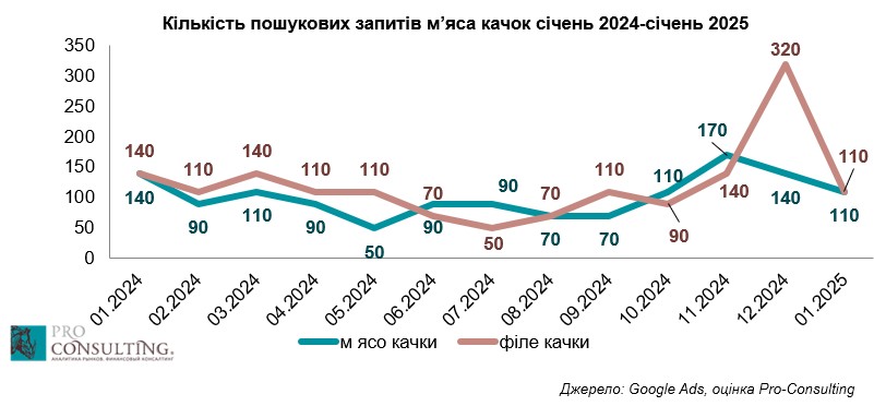 5. Кількість пошукових запитів м’яса качок січень 2024-січень 2025