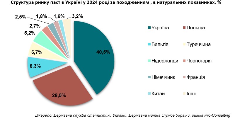 2. Структура ринку паст в Україні у 2024 році за походженням , в натуральних показниках, %