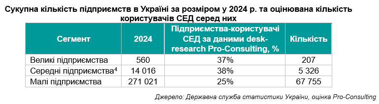 2. Сегментація підприємств-користувачів СЕД в Україні за розміром