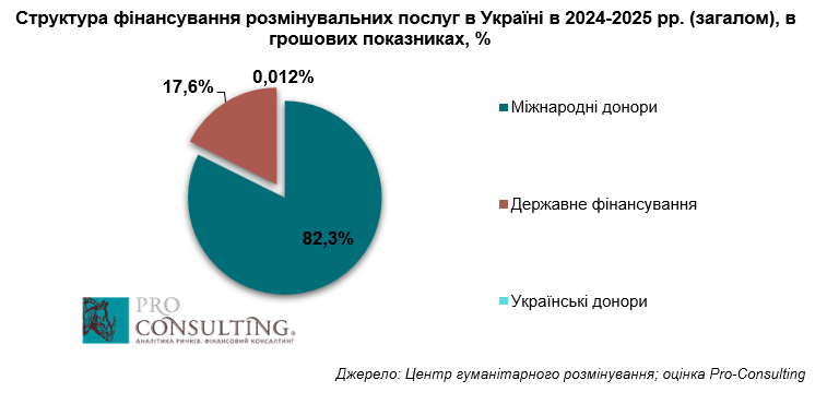 1. Структура фінансування розмінувальних послуг в Україні в 2024-2025 рр. (загалом), в грошових показниках, %