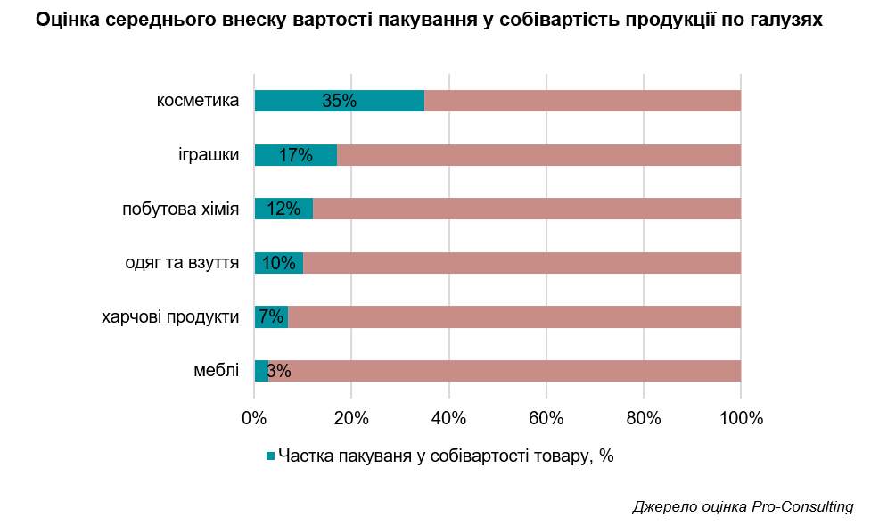 10. Оцінка середнього внеску вартості пакування у собівартість продукції по галузях