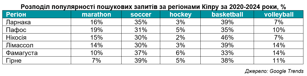 Серед усіх видів спорту за популярністю в пошуковій системі Google лідирують: баскетбол, футбол, марафон, волейбол і хокей.