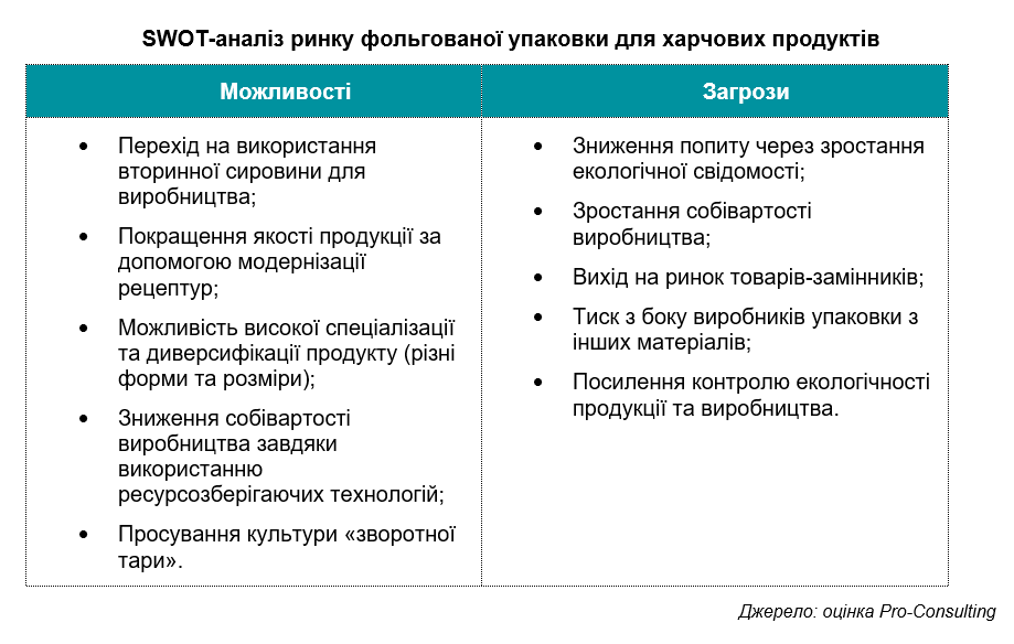 Більше інформації міститься в матеріалах маркетингового дослідження ринку фольгованого пакування для харчових продуктів в Україні, доступного у магазині готових проєктів компанії Pro-Consulting.