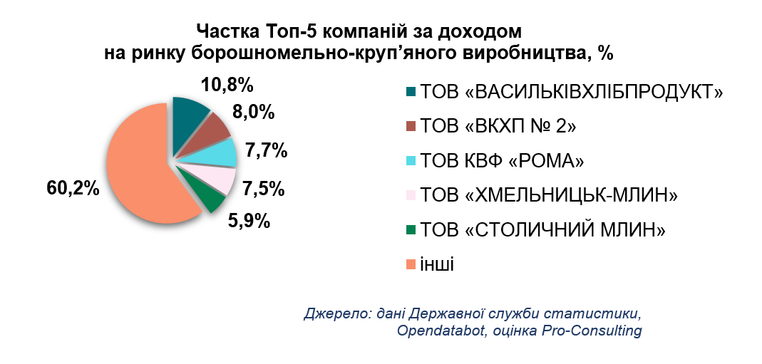 Ринок борошна в Україні більш концентрований: близько 40% його обсягу контролюють п'ять найбільших компаній. У сегменті хлібобулочних виробів ситуація протилежна – частка десяти лідерів за доходами становить лише близько 3%, що вказує на високу фрагментованість і жорстку конкуренцію.