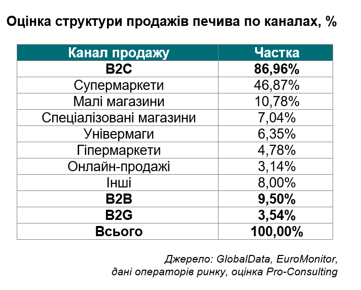 Основним каналом продажів залишаються супермаркети, на які припадає майже половина ринку печива в Україні. Значну роль відіграють малі магазини та спеціалізовані точки. Онлайн-продажі поки що займають лише близько 3%, але мають потенціал зростання. Також у нас є вже готовий аналіз ринку роздрібної торгівлі продуктами харчування в Україні.