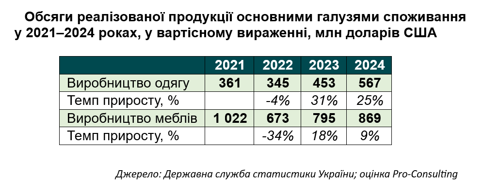 - Меблеве виробництво: після падіння в 2022 році галузь поступово відновлюється. Обсяги зросли з 673 млн дол. до 869 млн дол. у 2024 році, що також стимулює потребу в текстильних і швейних технологіях. До речі, у Pro-Consulting є вже готовий звіт по ринку меблів у Скандинавії – за аналогічною або скоригованою структурою ми можемо дослідити будь-який ринок світу або України.