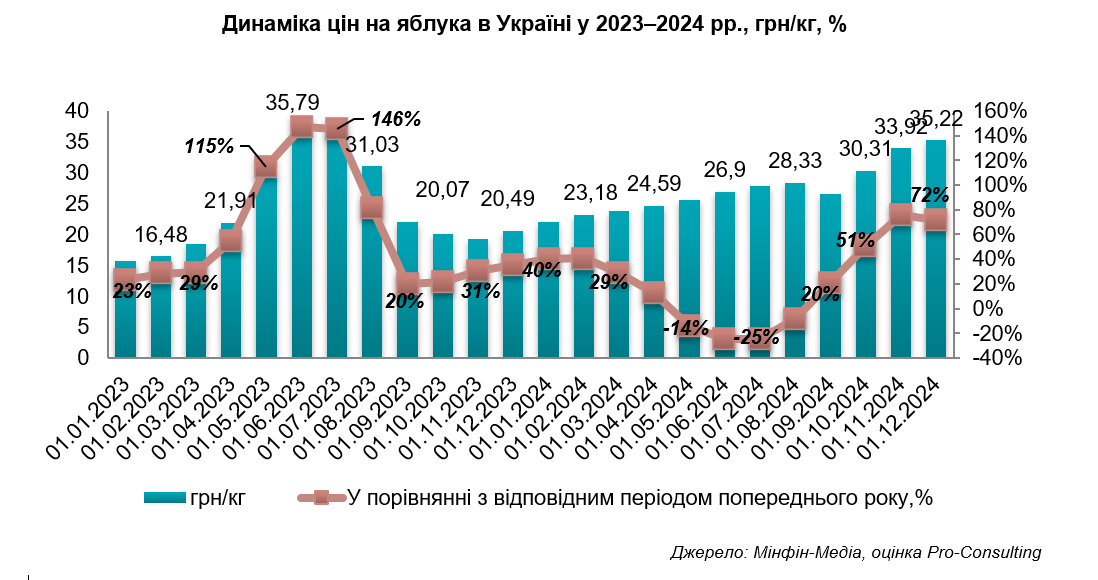 Однак уже в 2024 році ситуація на ринку соків в Україні змінилася. Весняні заморозки та літня спека призвели до зниження врожаю яблук на 30–40%. Додатковий тиск чинили: