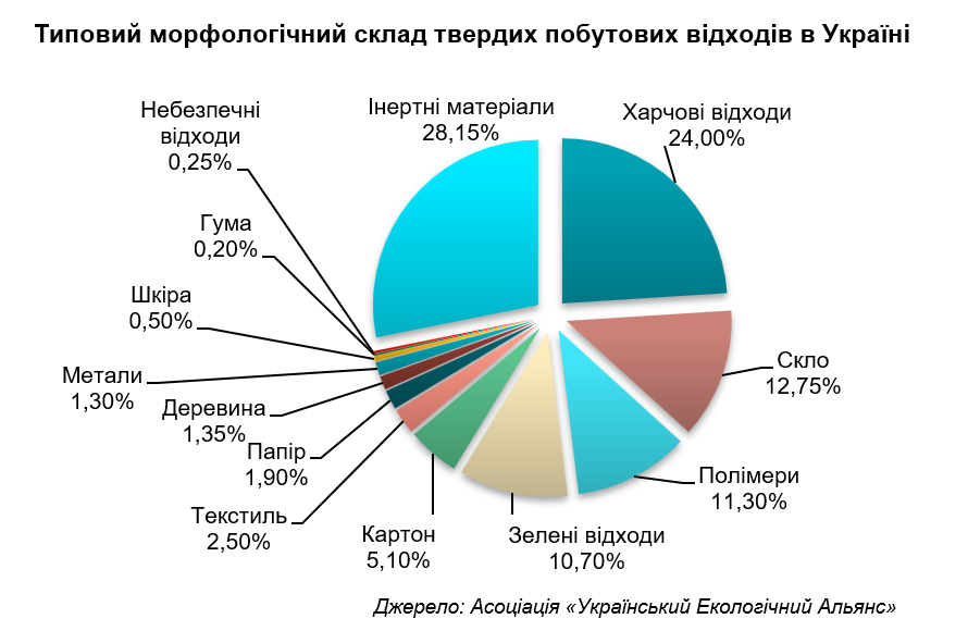 Решта маси направляється на полігони, багато з яких не відповідають стандартам ЄС, де рівень переробки досягає 30–60%.